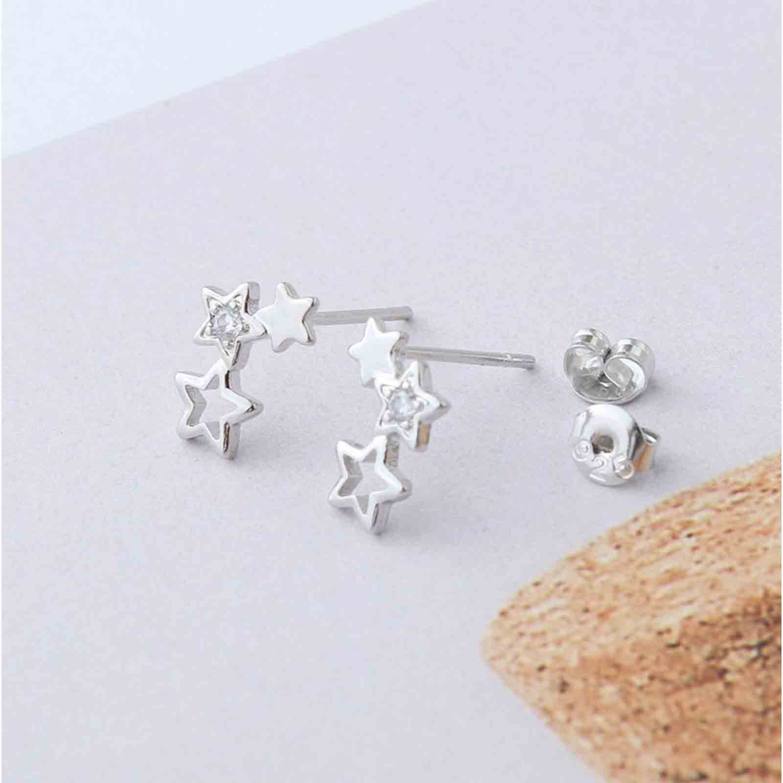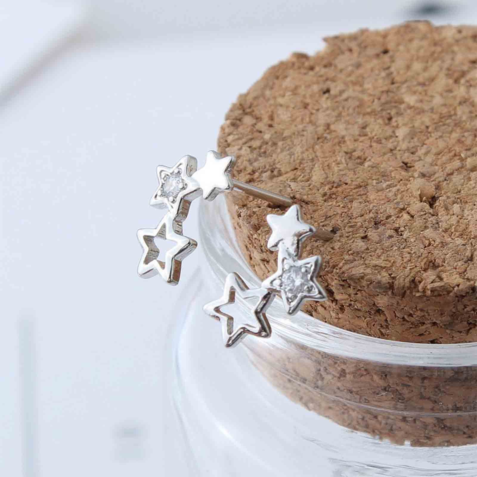 Yheakne Boho Rhinestone Star Ear Climber Earrings Silver Cluster Star Earrings Minimal Crawler Earrings Vintage Studs Earrings Jewelry for Women and Girls