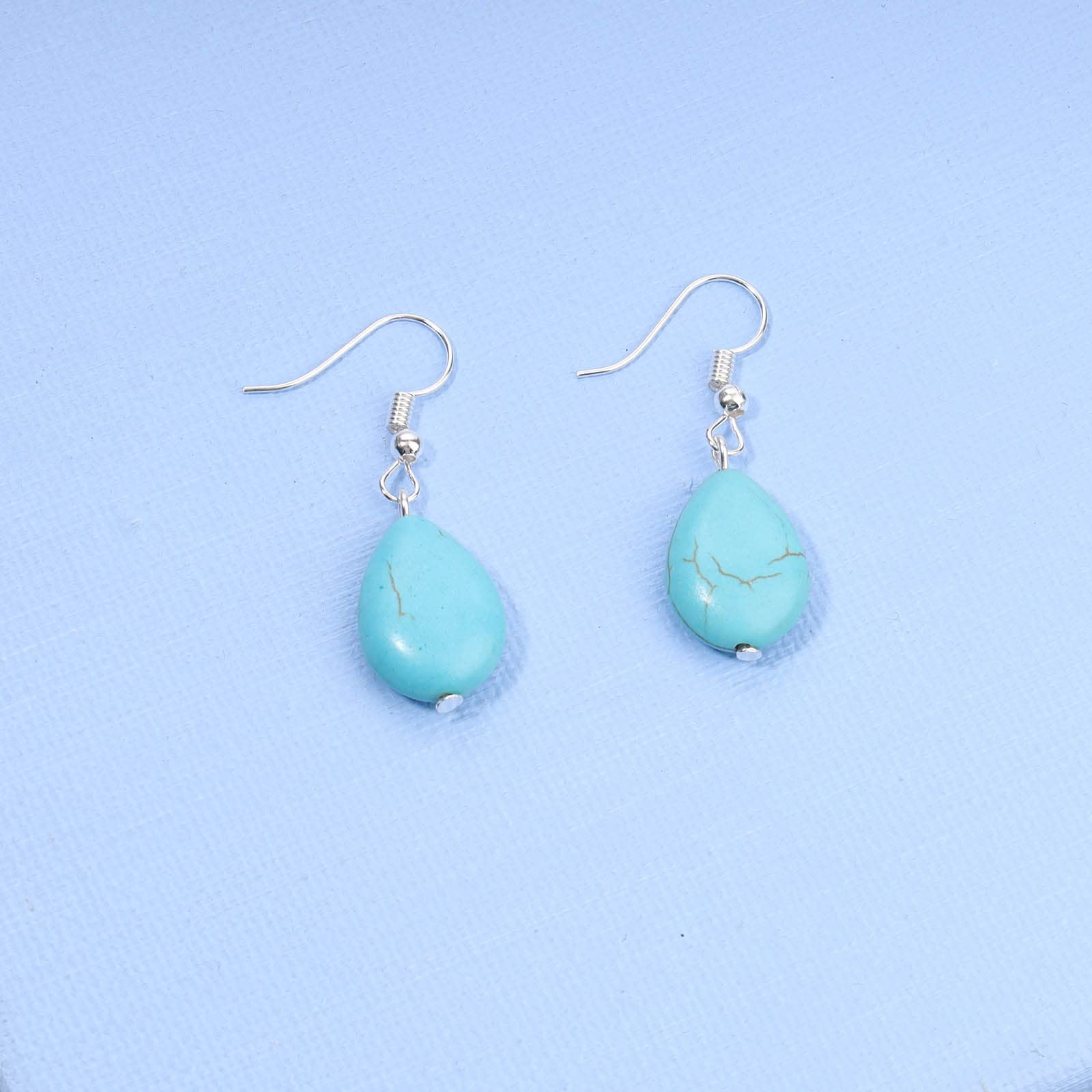 Yheakne Boho Turquoise Teardrop Earrings Silver Turquoise Eardrop Earrings Blue Gemstone Dangle Earrings Vintage Drop Hook Earrings Jewelry for Women and Girls