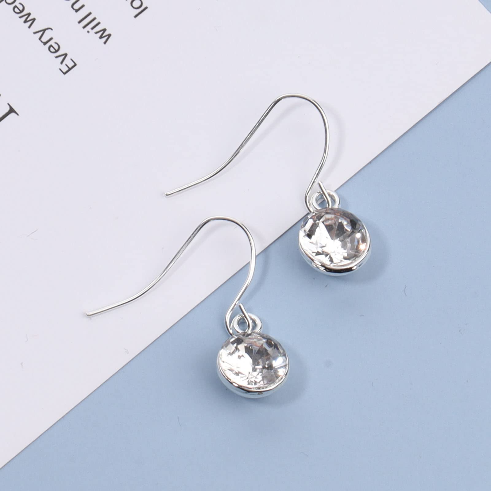 Yheakne Crystal Dangle Drop Earrings Silver Dangle Crystal Hook Earrings Minimal Crystal Solitaire Earrings Classic Rhinestone Bridal Earrings Jewelry for Women and Girls