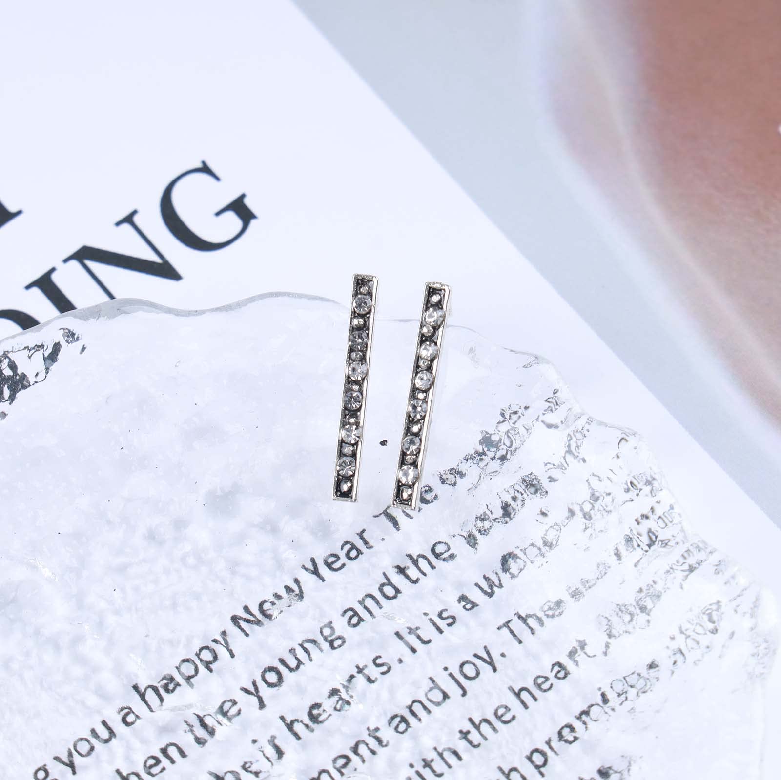 Yheakne Geometric Crystal Bar Earrings Silver Cz Bar Stick Earrings Cz Rhinestone Bar Stud Earrings Silver Minimalist Earrings Jewelry for Women and Girls (Long)