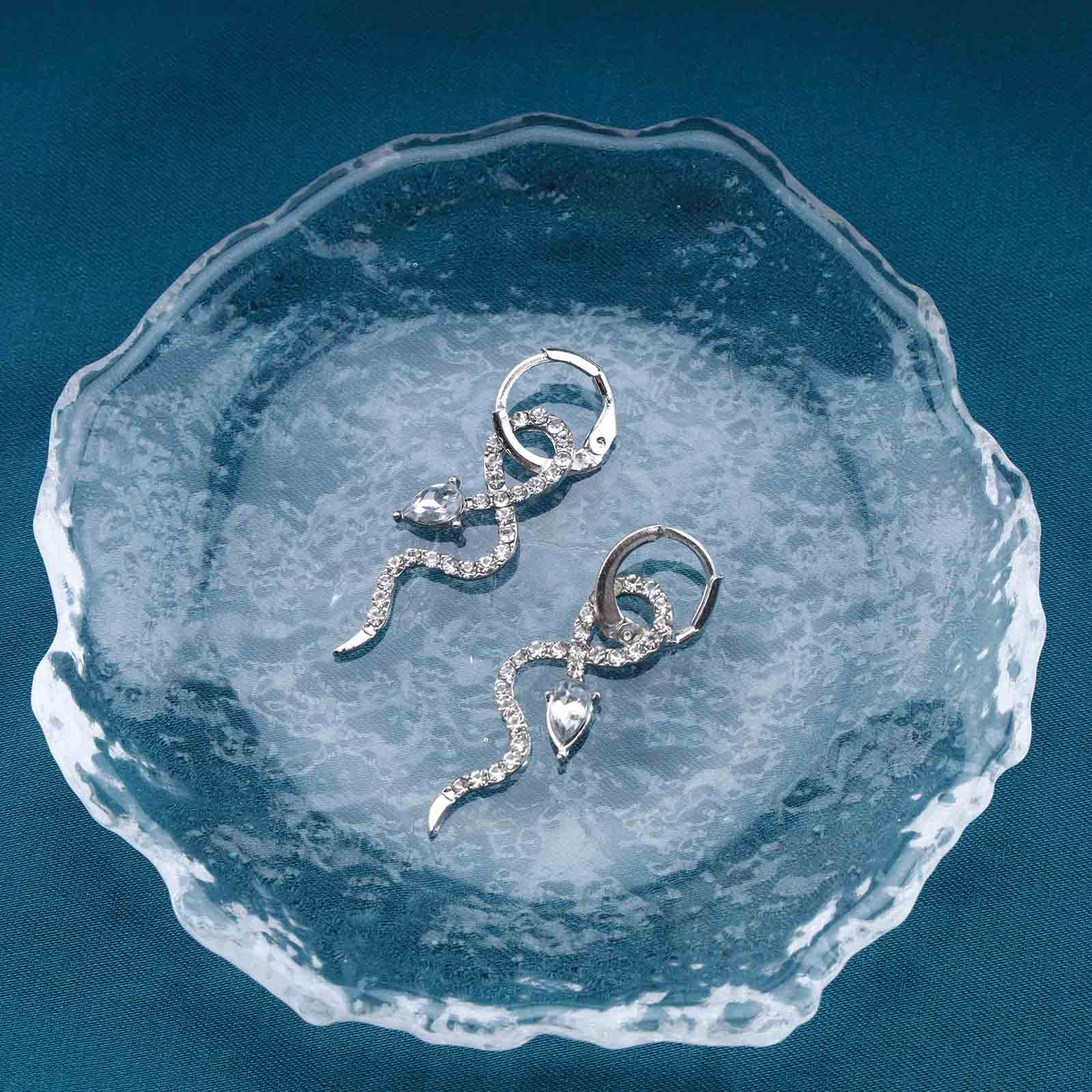 Yheakne Gothic Crystal Snake Drop Earrings Silver Serpent Earrings Punk Snake Hoop Earrings Unusual Halloween Earrings Jewelry for Women and Girls