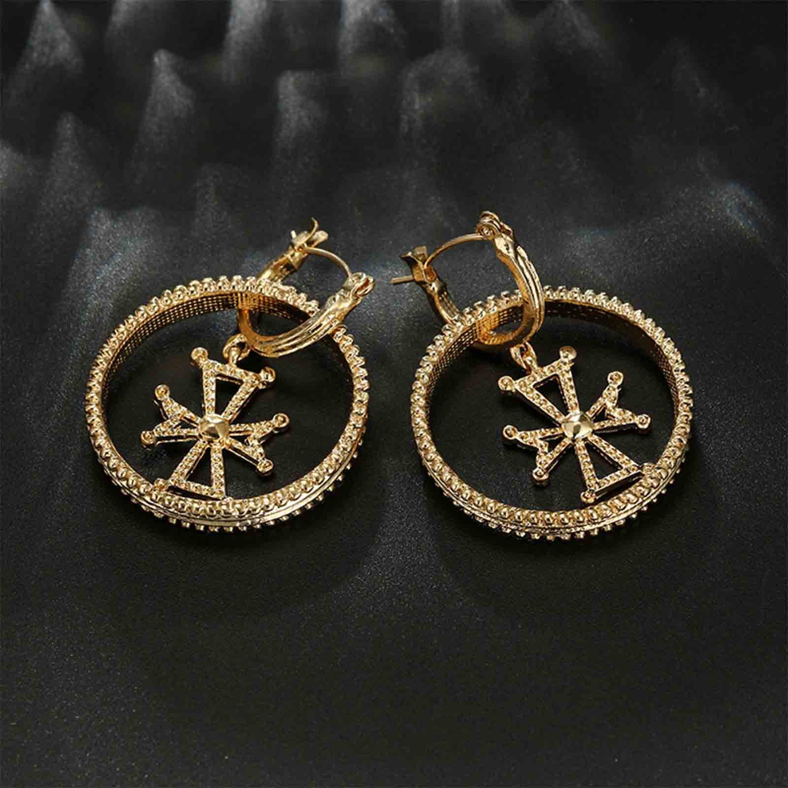 Yheakne Punk Circle Cross Earrings Gold Circle Drop Dangle Earrings Brass Geometric Earrings Modern Chunky Drops Earrings Jewelry for Women and Girls Gifts