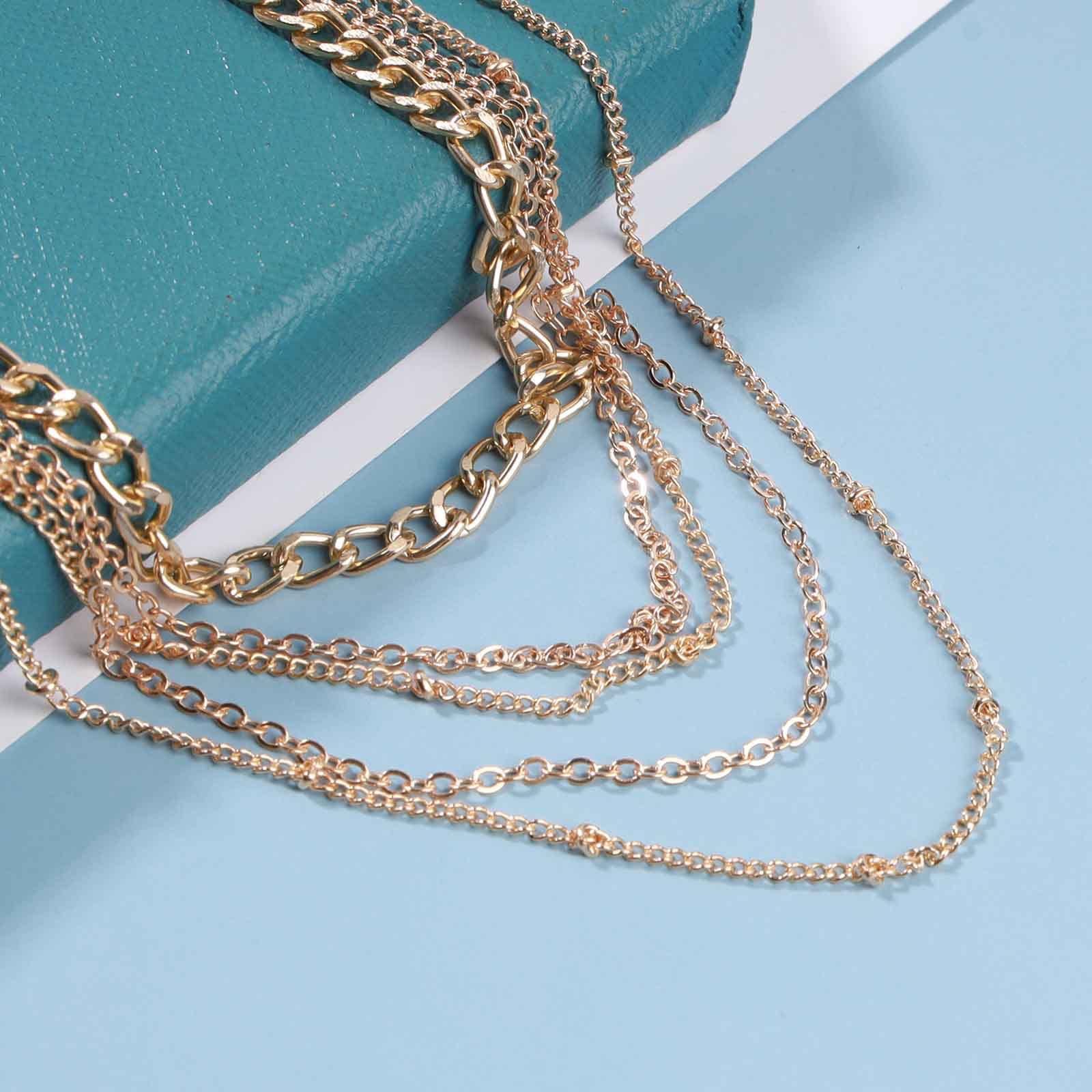 Yheakne Punk Layered Curb Chain Necklace Gold Satellite Chain Necklace Vintage Stacking Necklace Personalized Necklace Jewelry for Women and Girls
