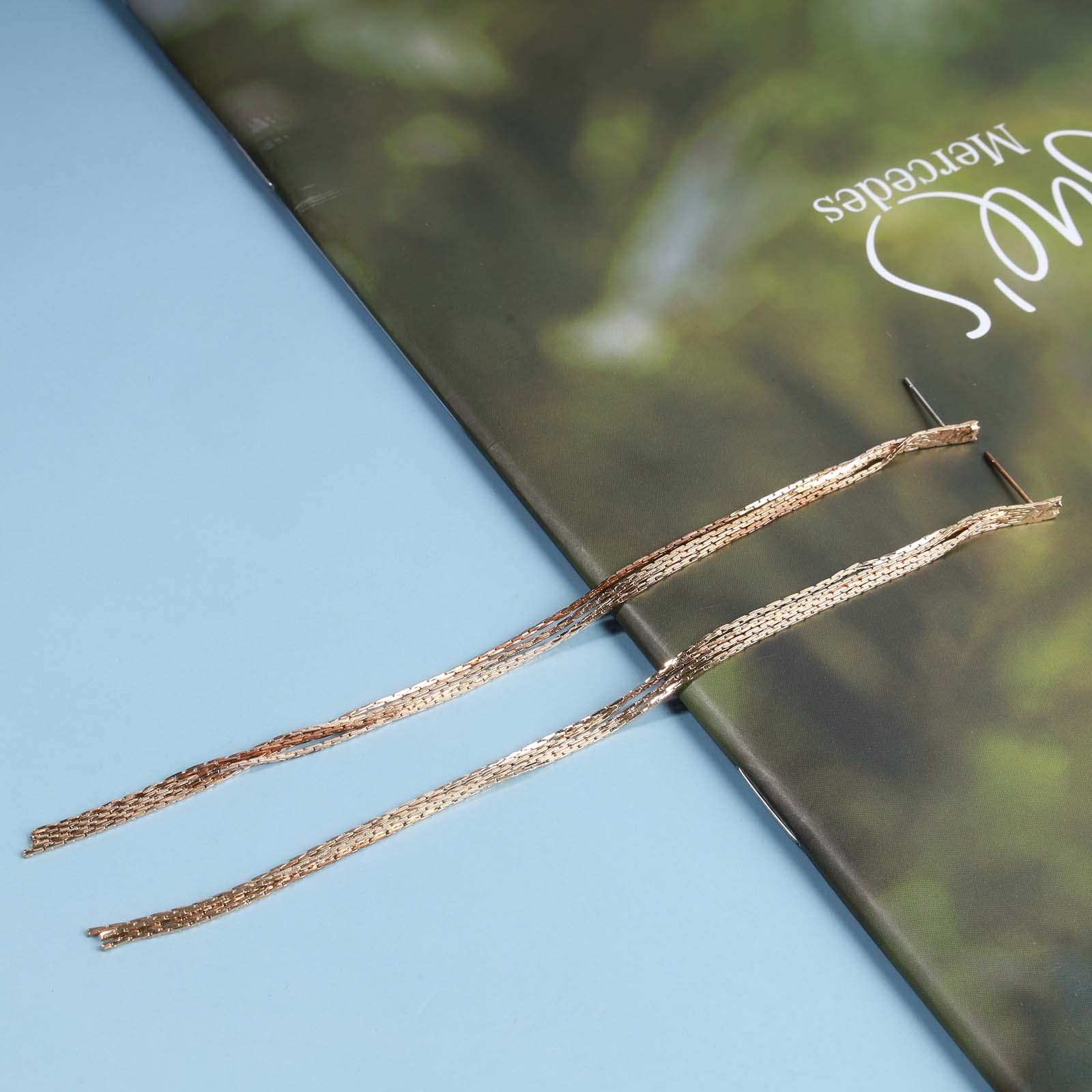 Yheakne Punk Long Linear Drop Earrings Gold Chandelier Chain Earrings Dangle Chain Tassel Earrings Sleek Metal Chain Earrings Jewelry for Women and Girls Gifts