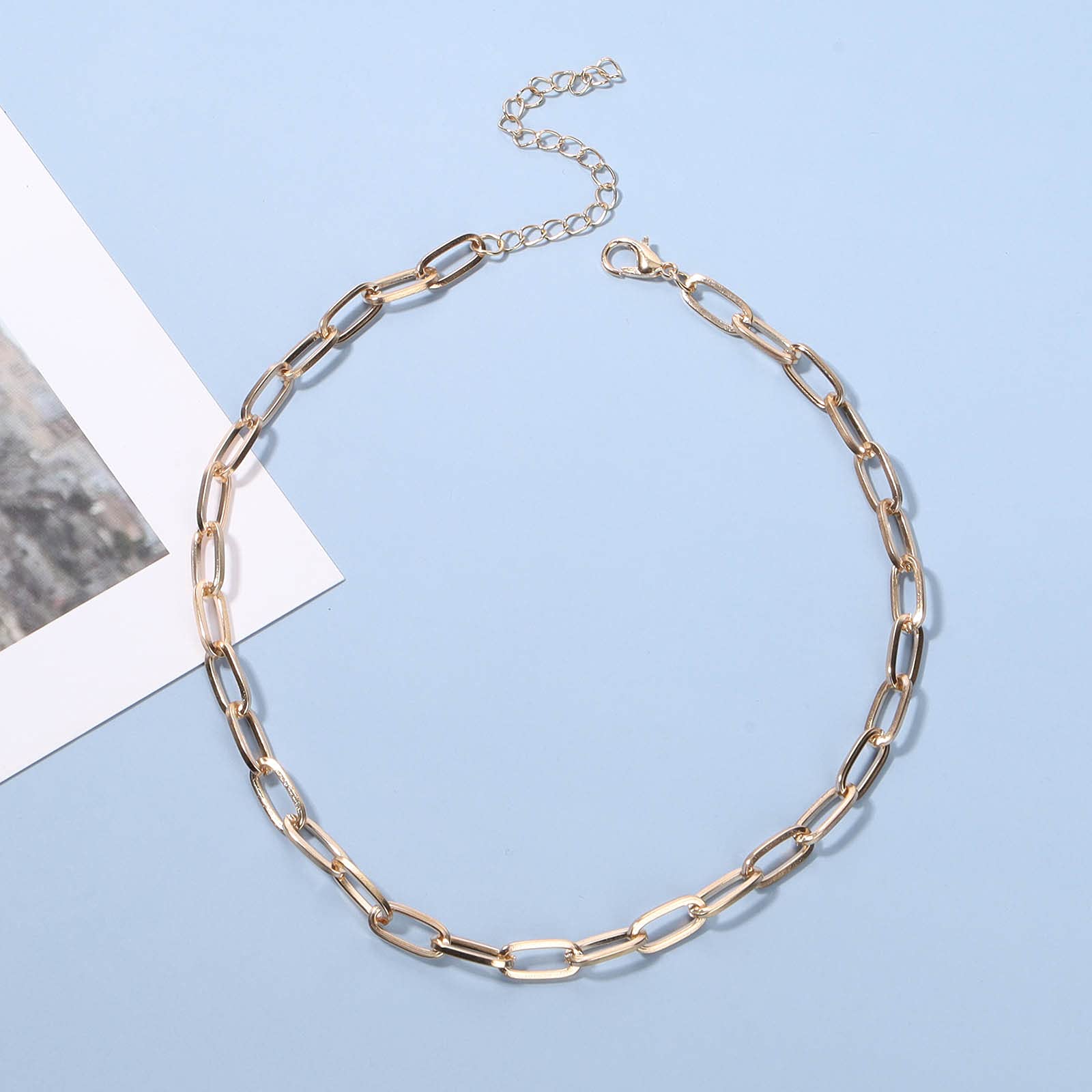 Yheakne Punk Paper Link Choker Necklace Gold Paperclip Chain Necklace Choker Open Link Chain Necklace Trendy Chain Necklace Jewelry for Women and Girls