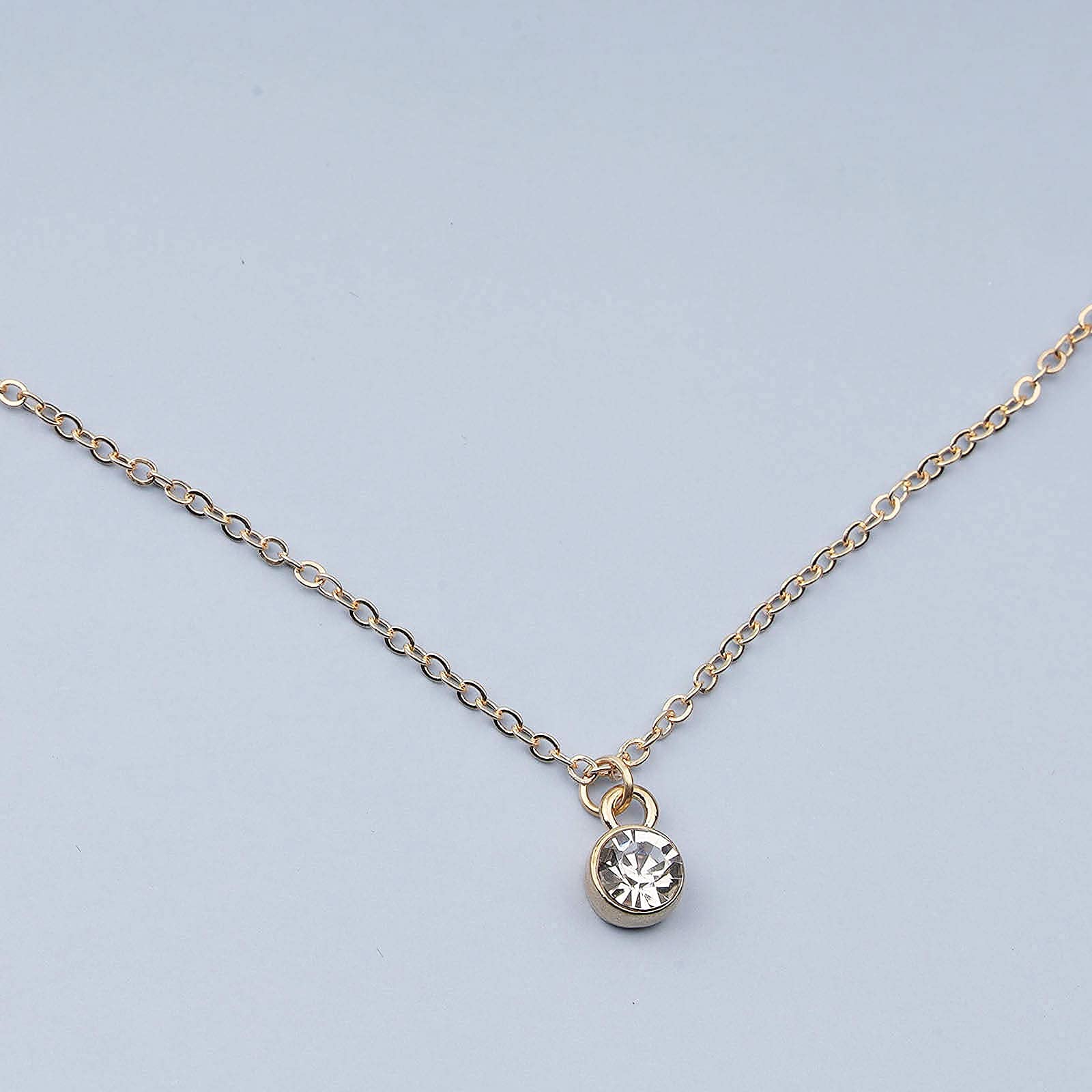 Yheakne Tiny Rhinestone Pendant Necklace Gold Diamond Choker Necklace Solitaire Diamond Necklace Floating Crystal Necklace Chain Bridesmaid Gifts for Women and Girls