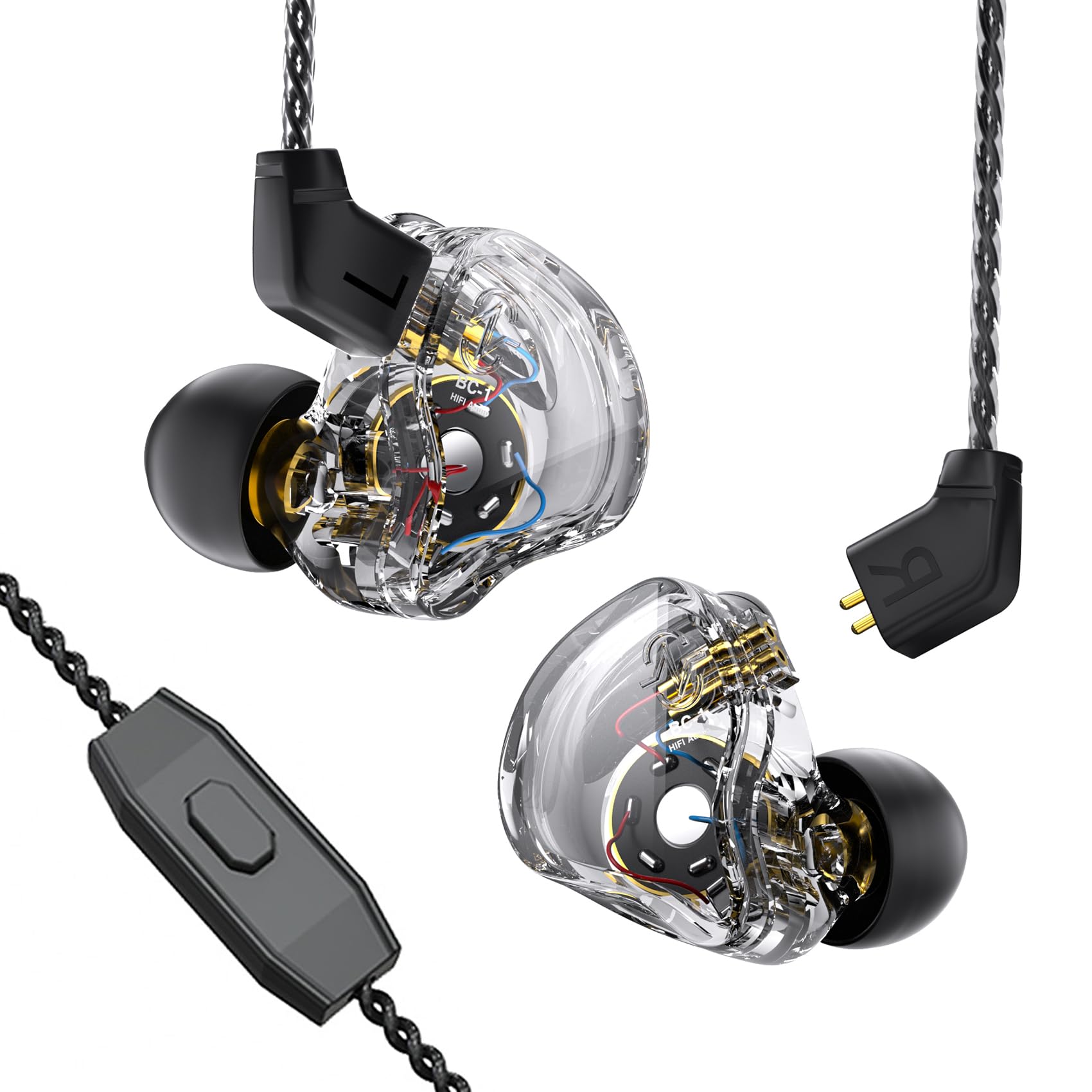 Yinyoo CCZ Melody In-Ear-Monitors Hybrid 1BA 1DD HiFi Earphone, Deep Bass Lightweight In-Ear Earphone IEM with 4N OFC Cable for Musician/Drummer/Bassist/Guitarist(Clear Black, with mic)