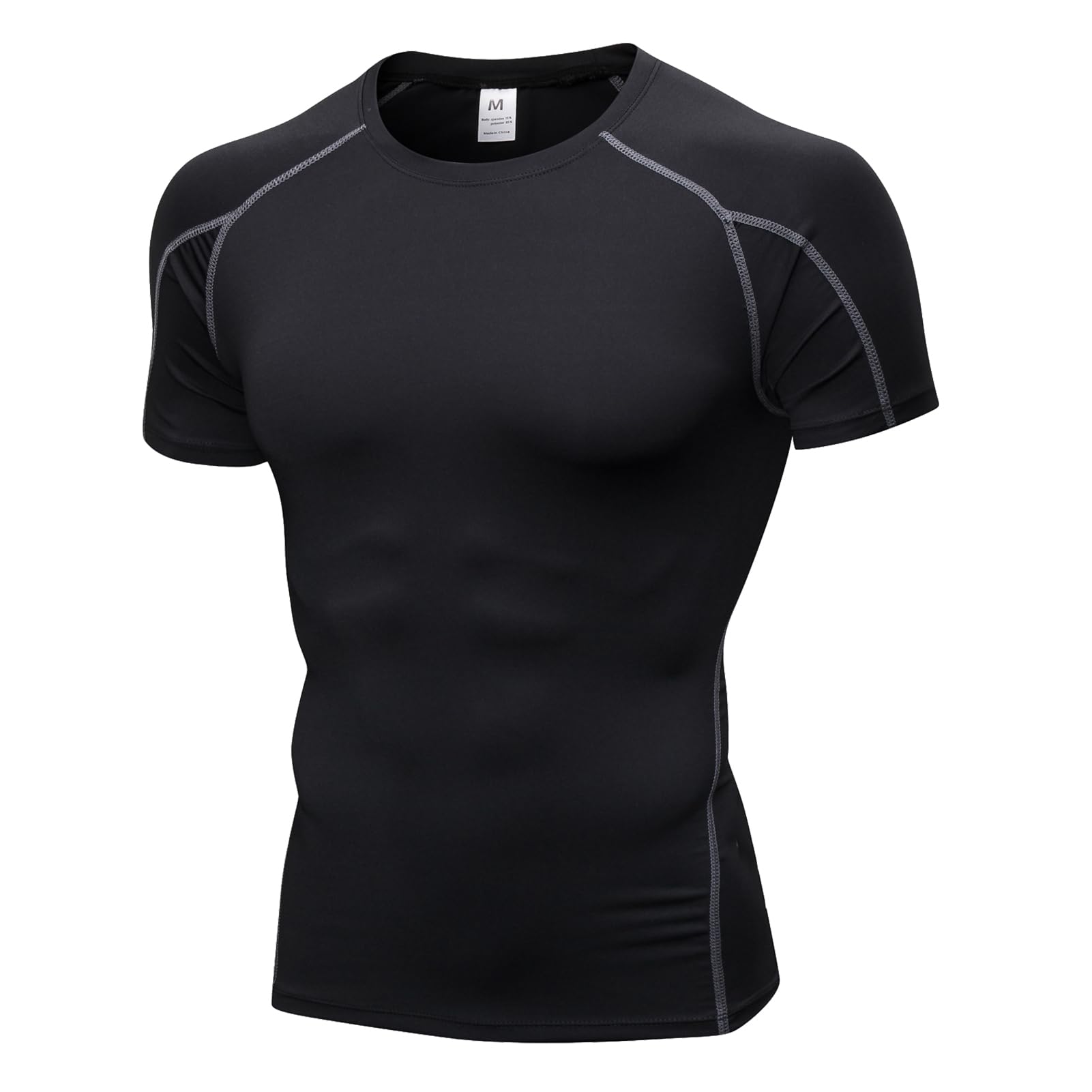Yishengwan Compression Tops for Men Short Sleeve Mens Compression Shirts Quick-Drying Base Layer Shirts Gym Top Running T-Shirts for Sports Fitness Workout Cycling Training, Black Grey, S