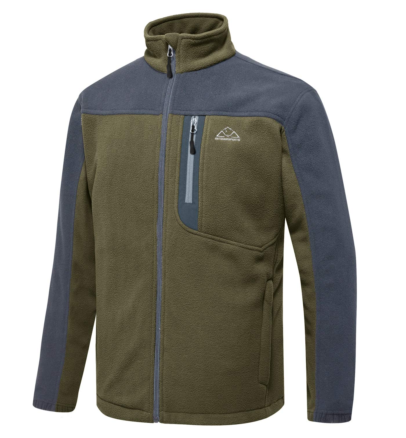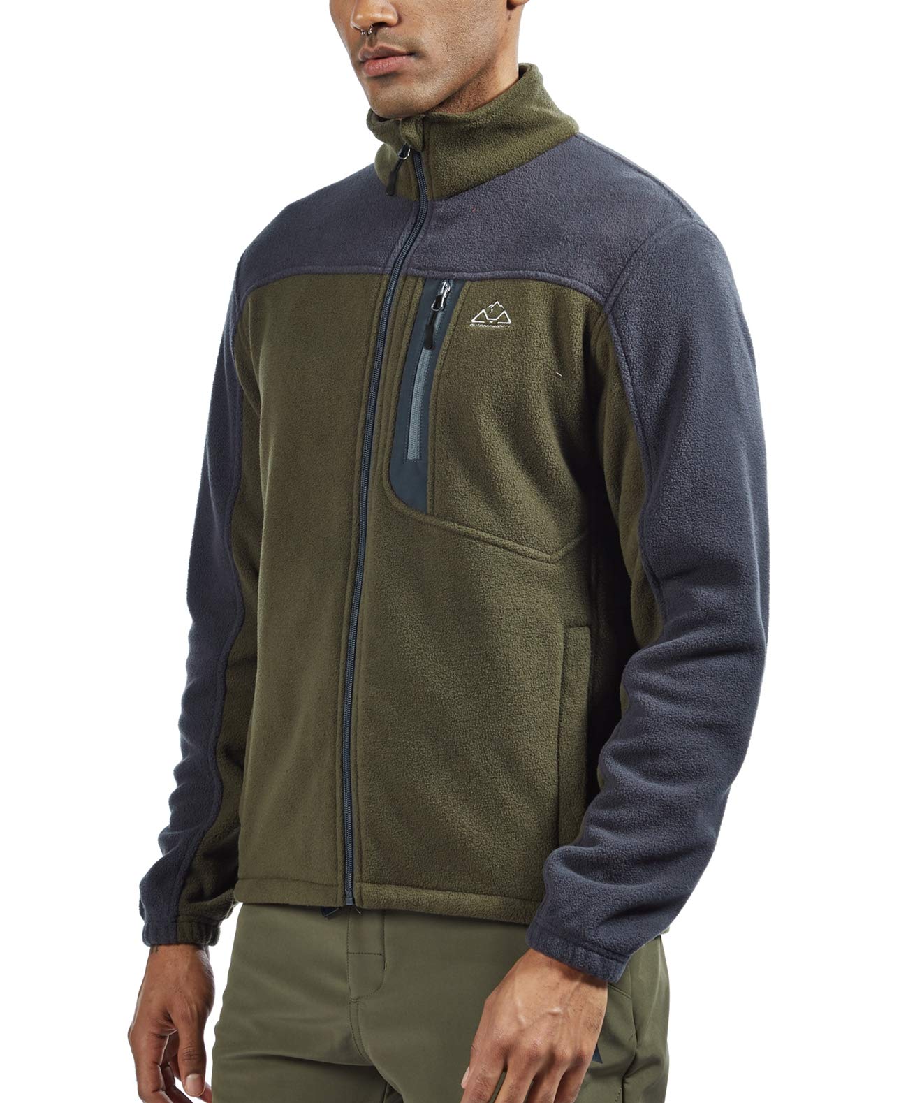 YSENTO Mens Outdoor Micro Fleece Full Zip Top Warm Winter Fleece Thermal Lightweight Walking Jacket(Green,XXL)