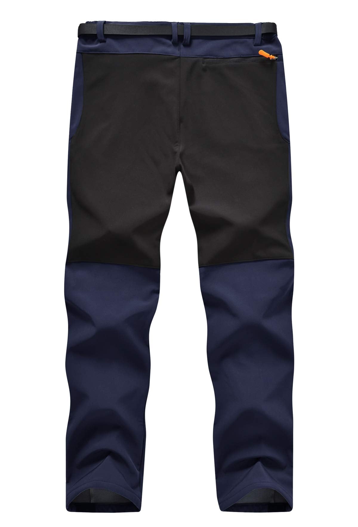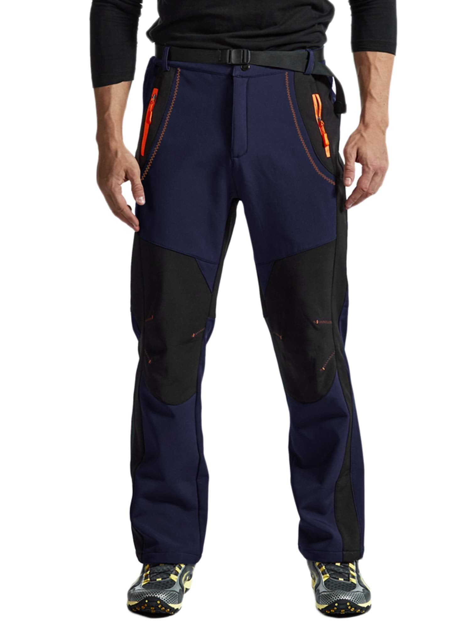 YSENTO Mens Waterproof Hiking Walking Trousers Winter Thermal Fleece Lined Softshell Ski Outdoor Camping Trouser with Belt(01navy,L)