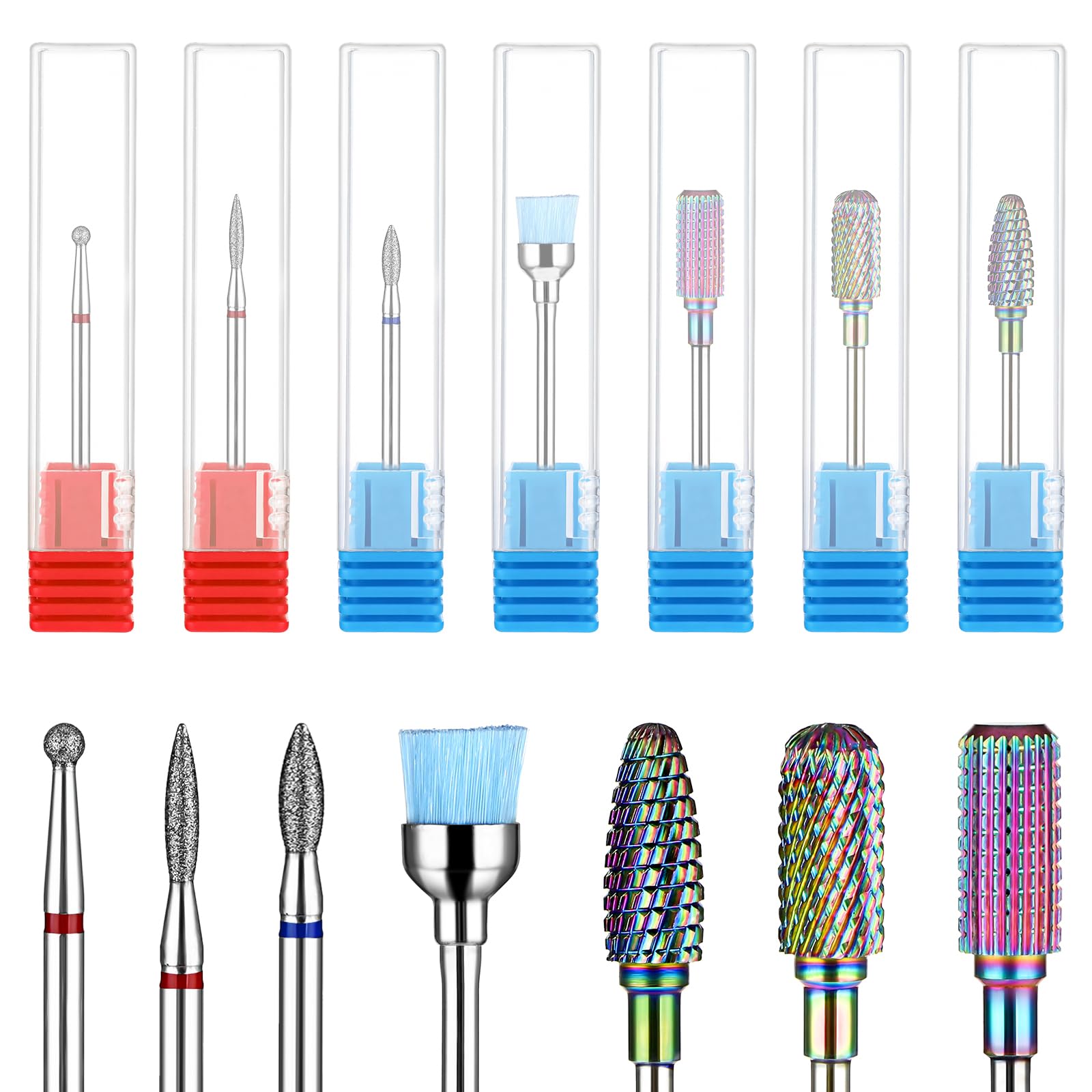 YUXIANLB 7 Pcs Nail Drill Bits Set, Tungsten 3/32 Inch Carbide Diamond Nail Drill Bits for Acrylic Nails, Curticle Bit for Nail Drill, Professional Cuticle Removal Nail tools for Manicure Pedicure
