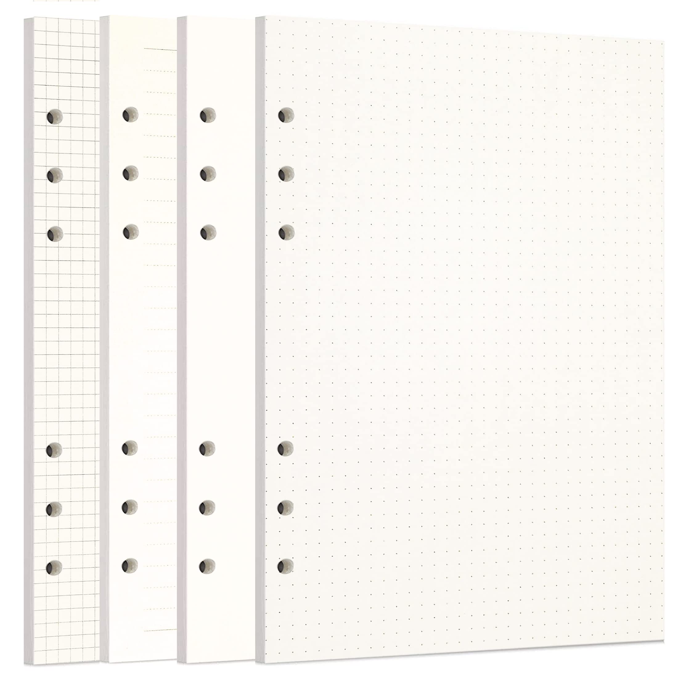 Zelten 1 Pack A5 80 Sheets/160 Pages 4 in 1 Lined Squared Dotted Blank Loose Leaf Punched Paper Refills Paper for 6 Hole Binder Personal Organizer Diary Notebook Refillable Planner
