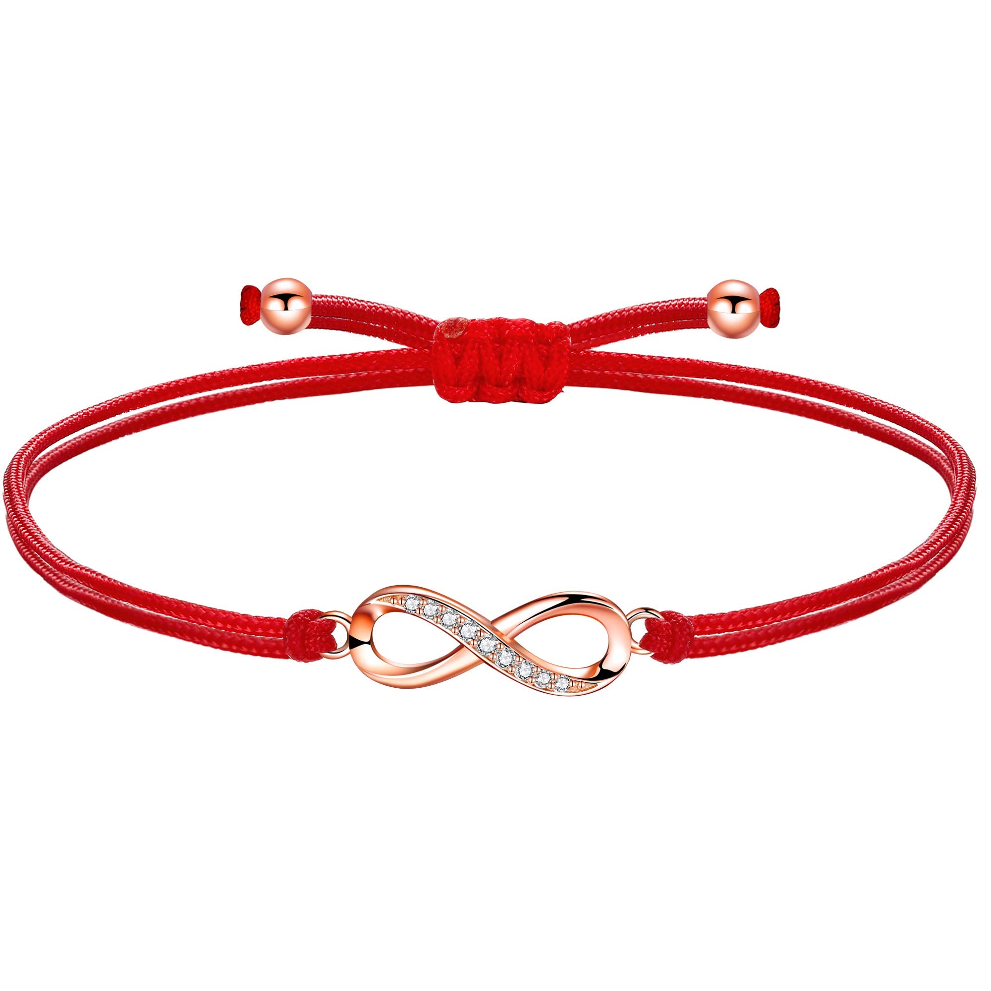 ZENI Bracelet Infinity Rose Gold Handmade Cord Filigree Braided Red Bracelet for Women Girl, Infinity Love Birthday Communion Gift