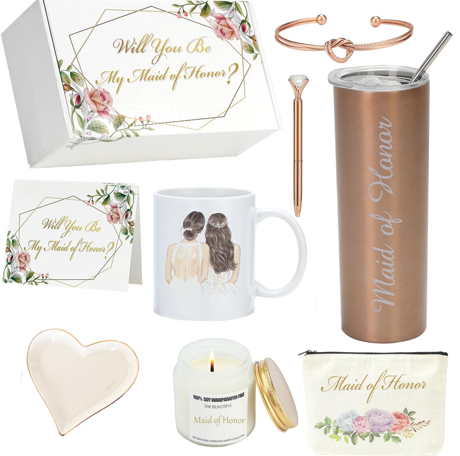 Maid of Honor Gifts Box,Will You be My Maid of Honor Gift ,20 oz Maid of Honor Proposal Gifts for Bridal Party,Bachelorette Party Stainless Steel Wine Tumbler Gift Set