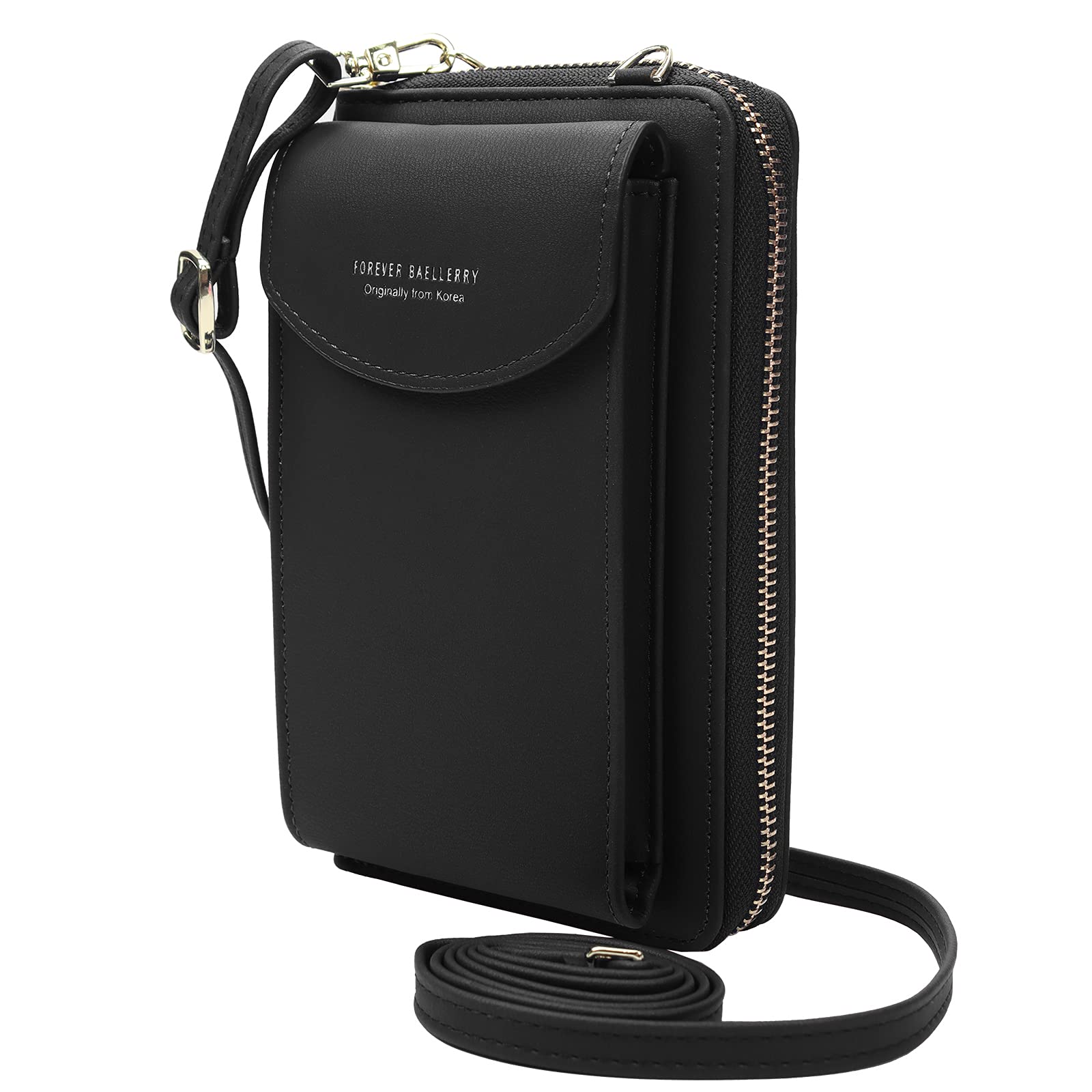 ZhengYue Crossbody Phone Bag for Women, Leather Ladies Handbags Mobile Phone Pouch with Long Strap Zip Card Slots, Small Cellphone Shoulder Bags Coin Purse Wallet Black