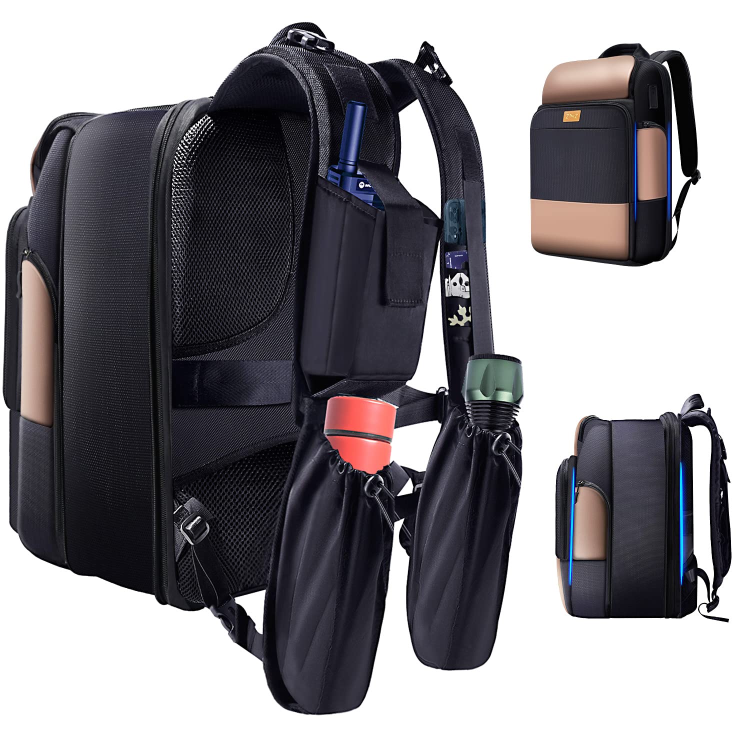 Versatile Travel Laptop Backpack with Patented Foldable Shoulder Pockets, Variable Capacity School Backpack with Business Anti-Theft & USB-port Fits 15.6 Inch Notebook, Gifts for Men Women,Black