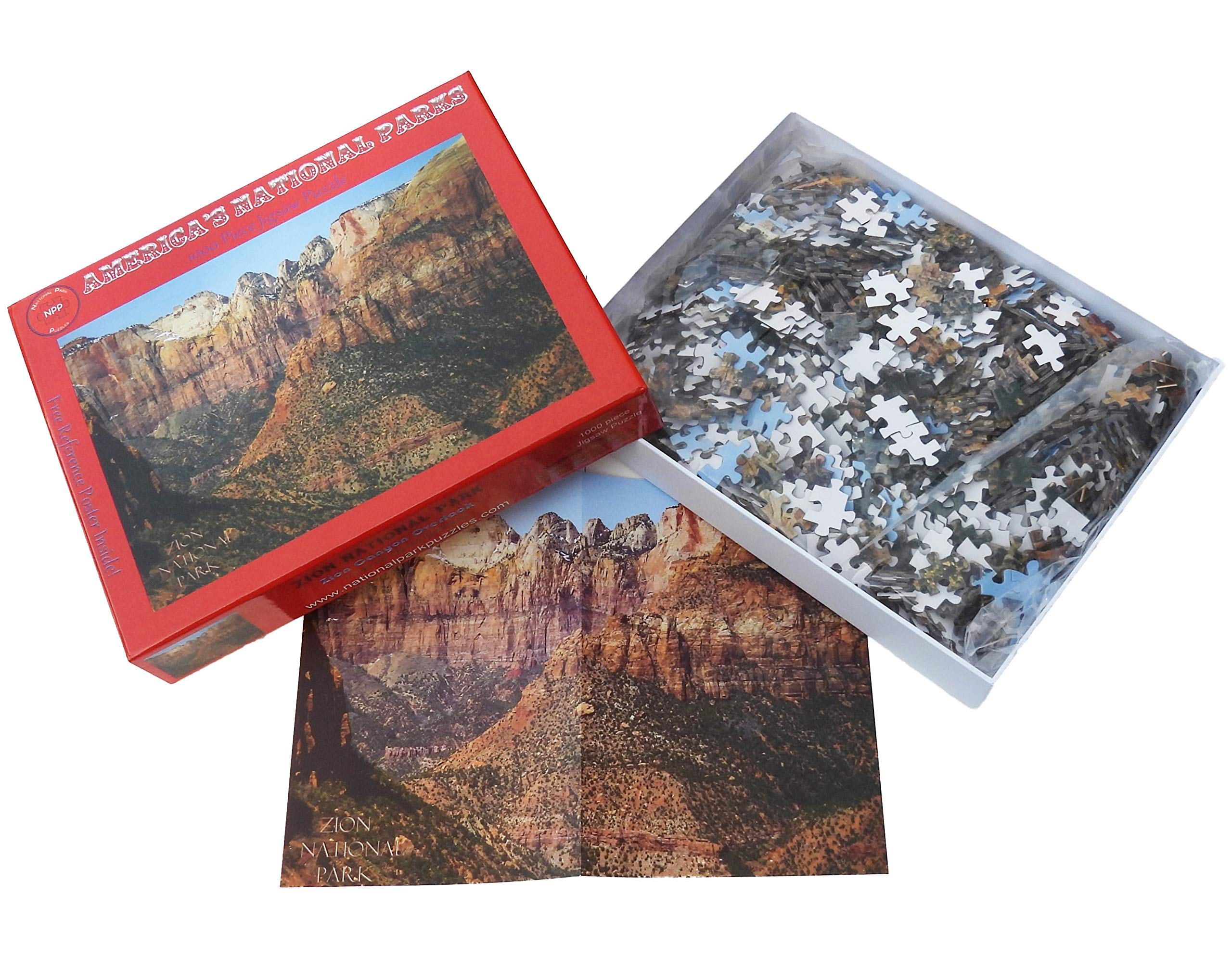 Beautiful image of the Zion Canyon from the Zion Canyon Overlook at Zion National Park. Our 1000 piece puzzles are 27.6 x 19.7 inches , differing piece shape to produce an interlock so tight you can pick it up and flip it over without losing a piece, Grade A chipboard 1/16 inch thick for sturdy, durable pieces that wont bend or break, and a premium glossy print making a puzzle you will love to hang on your wall when you are done! Reference Poster is included in the box!