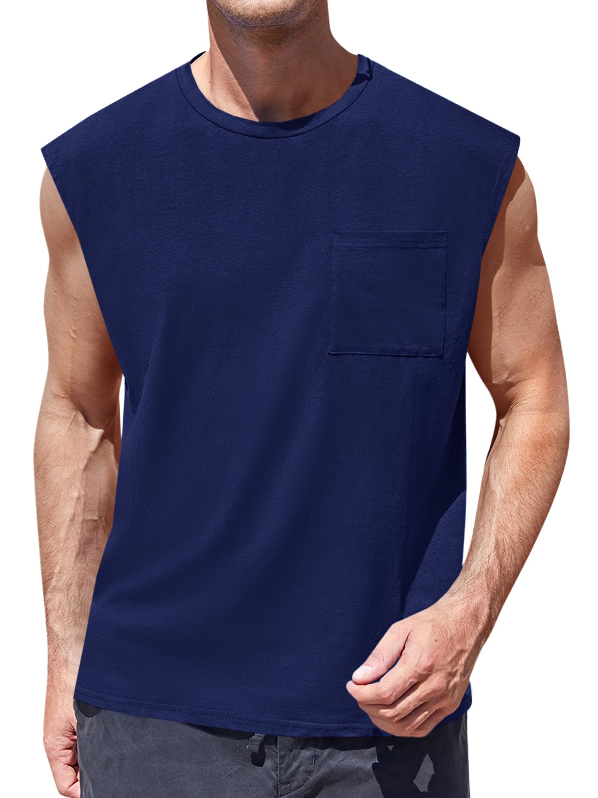ZIWOCH Mens Sleeveless Tank Tops Workout Cut Off Shirts Muscle Gym T Shirts with Pocket Navy