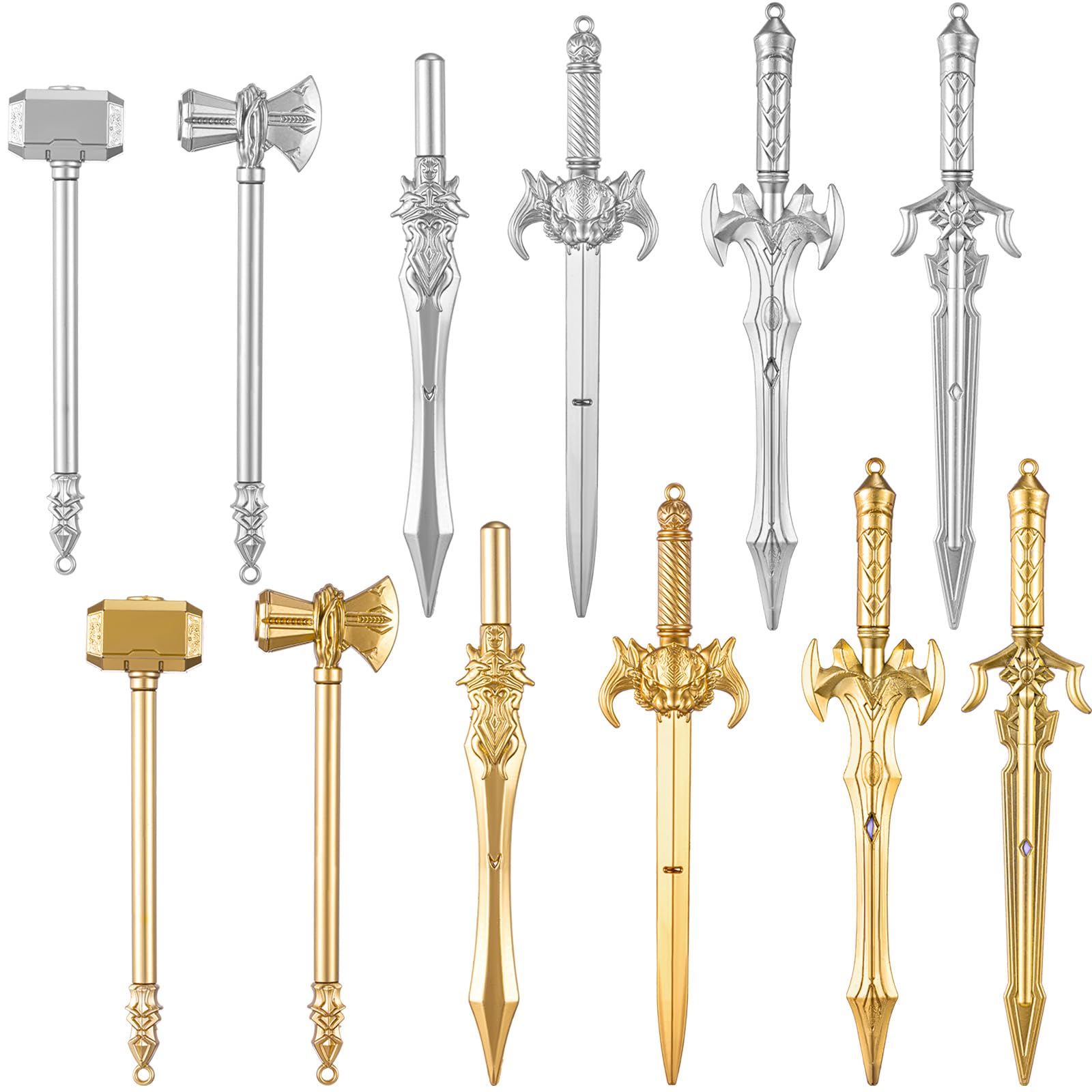 Zonon 12 Pack Ancient Sword Pens Set Fun Novelty Dragon Pens Novelty Gel Ink Cool Plastic Pens for Birthday Party Boy Presents and School Writing (Silver and Gold,Cool Style)
