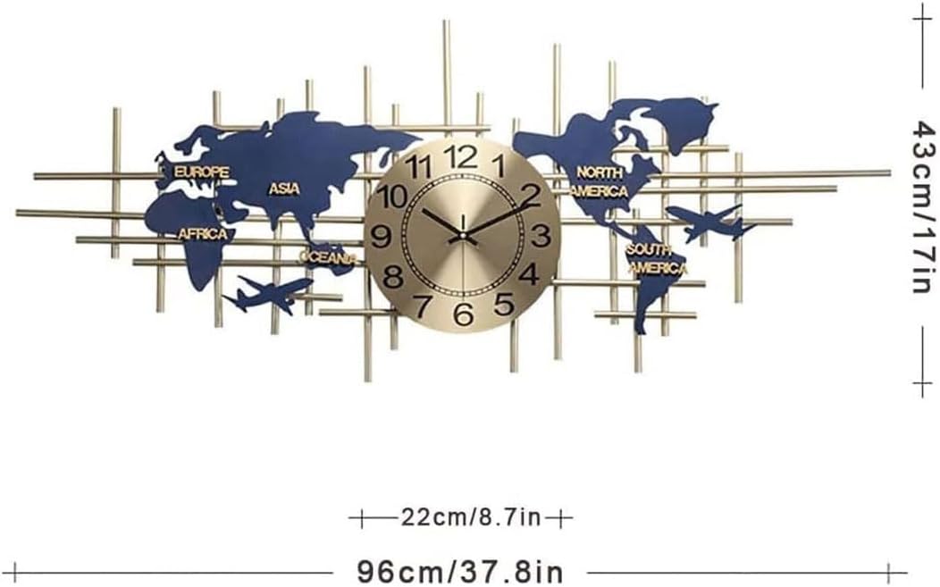 ZTDPHZ Modern Metal Large Wall Clock Silent Quartz Decorative 3D Clock Creative World Map Living Room Wall Clock Handmade Iron Frameless Wall Clock 37.8inch