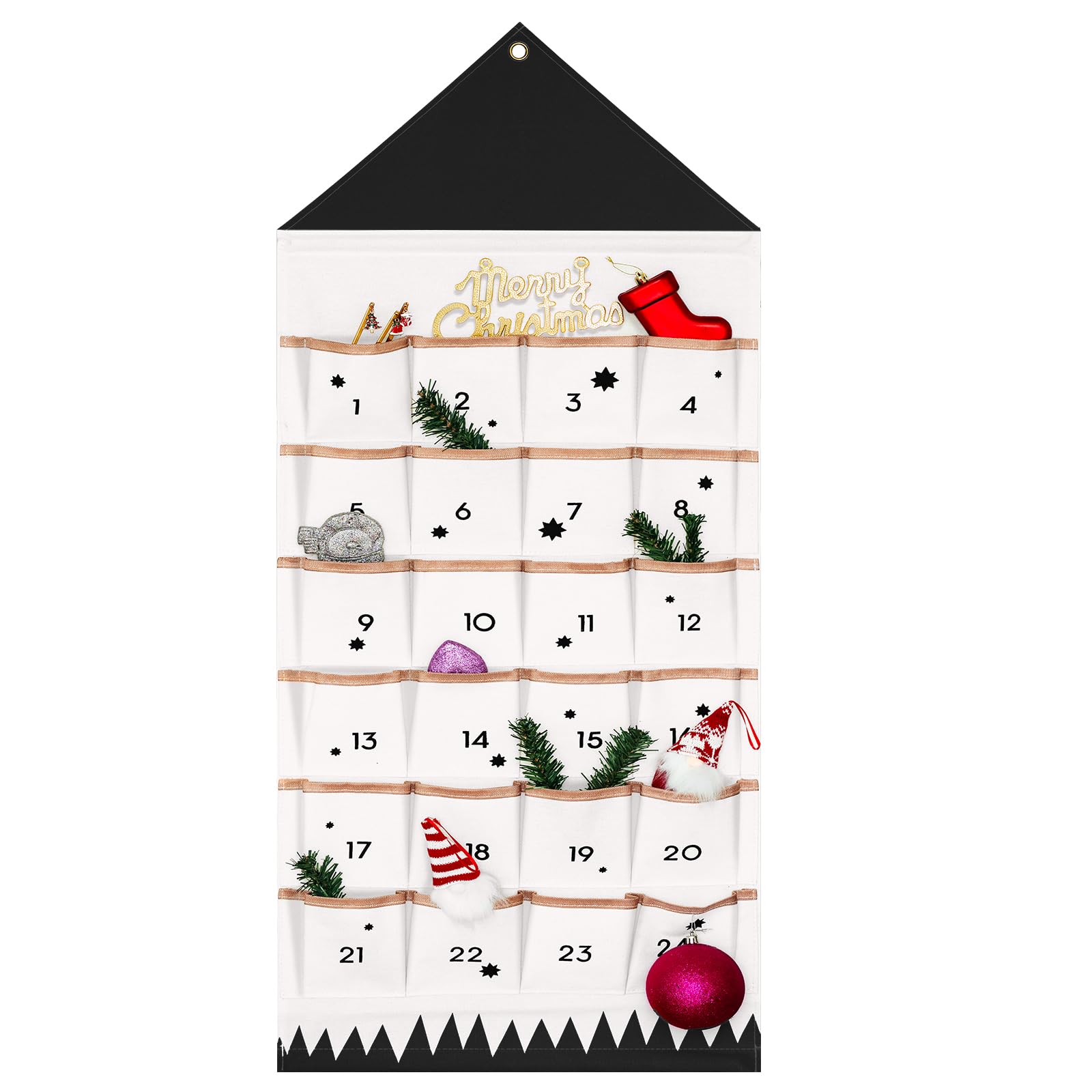 ZuoLan Advent Calendar to Fill Christmas Calendar Fillable, 24 Pockets Fabric Christmas Calendar for Hanging Christmas Ornaments (Black)