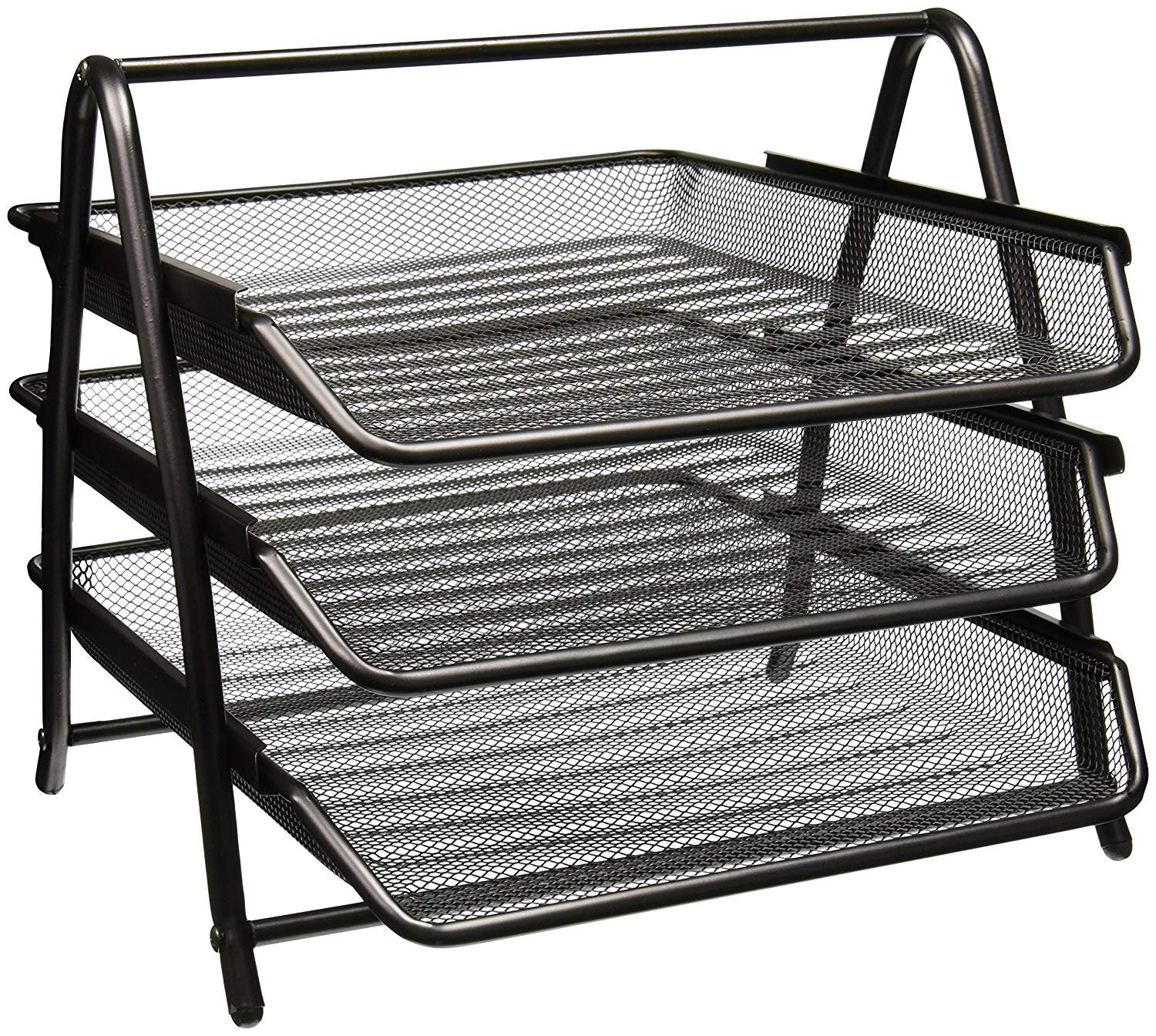 Zuvo 3 Tier Mesh Desk Organizer Letter Tray is made of steel mesh construction with a durable powder coat finish. Document sorting desk organizer's front-loading pull out trays slides out smoothly and goes right back easily for easy storage that's right there when you need it. Easy to assemble and save your space. Won't take up much counter space and is fairly unobtrusive. Keeps your desk well organized and clutter-free. Comes in black colour.
