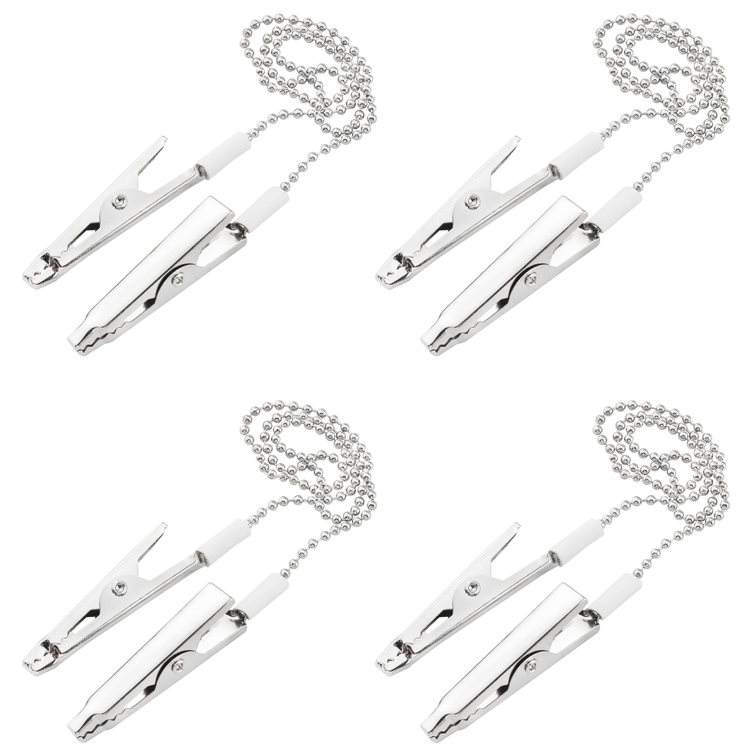 ZZLZX 4PCS Crocodile Clip Chain Hanging Rope Metal Chain with Ball for Fixing Dental Bib Clip Cover Napkin Clip Towel Clip Face Shield Used in Dental Clinics Silver